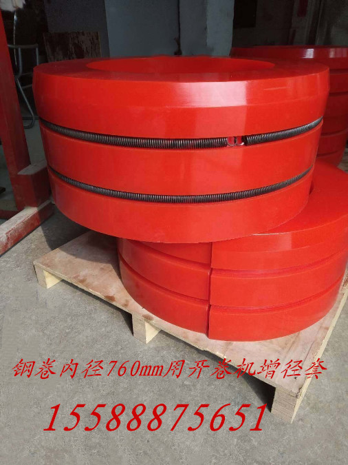 佛山縱剪開(kāi)平機(jī)廠家配套聚氨酯漲芯膠套是一種適用于鋼卷內(nèi)徑610mm、730mm、760mm用的開(kāi)卷機(jī)增徑膠套,寬度可根據(jù)客戶需要定制,產(chǎn)品規(guī)格齊全!所采用的聚氨酯材質(zhì),使增徑套具有較高的機(jī)械強(qiáng)度和氧化穩(wěn)定性,耐磨性佳,回彈性好!